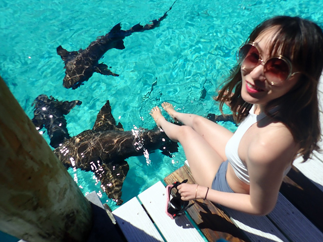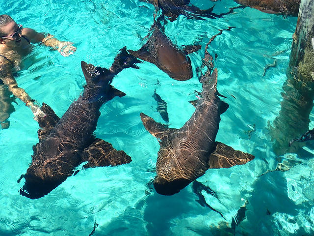 可以与护士鲨同游,这些护士鲨也不是圈养的,跟它们亲密接触的码头附近也完全没有围栏,只是常年累月有游客在这里喂食,机智的护士鲨都聚集到这一片。大的几条真的有一人多长,皮摸上去有点粗糙,像砂纸。