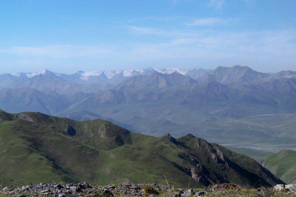 从野牛沟 上山到垭口这一路还算好。有一些烂路,也有一些雨水形成的沟,但总的来说大部分路面还算平,宽度也够。只是路面布满了落石,很多是相当的尖锐,而且 弯度也大,我是不敢提速。花了一个多小时好不容易到了垭口。踹一口气,这里景色不错。可以平视雪山。