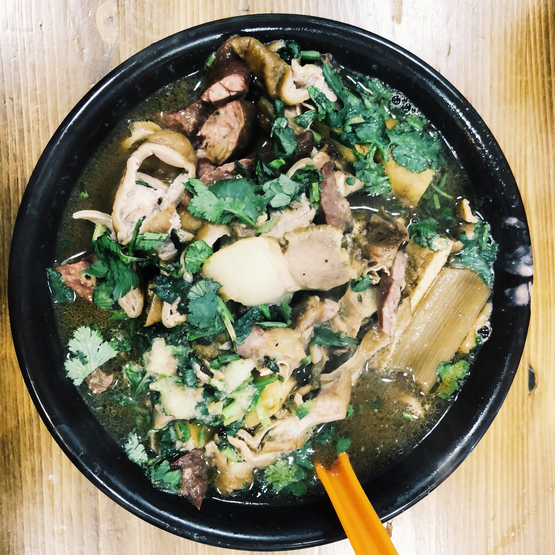 来北京,我吃过不少的卤煮,在前门附近就吃过三家,第一家就是随便在门框胡同附近吃的,第二家是看到花姐对面的那家门框卤煮人爆多,便也去凑了凑热闹,第三家则是最正宗的一家叫做老六门框卤煮,在大众点评上也是排名门框界的老大,老板叫老六,是个老北京 ,去的时候,叔叔很热情地招待我们,吃到一半又帮我们满热汤,给我们介绍很多他们老北京经常去吃的老店,哪家烤鸭哪家稻香村吃不得,正宗的又在哪里,按他的话老说:姑娘,咱不缺钱,咱老 北京 人咱就是实诚! 对啊,前门附近的三个门面,呵呵呵呵呵,无法想象……