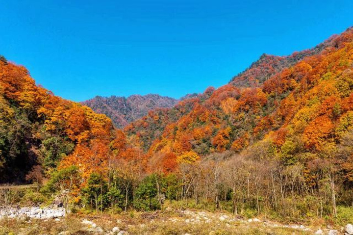 米仓山国家森林公园最佳观赏时间是在十月底十一月初,都知道这里是看红叶的,其实景区名字有点晕,一般都说光雾山看红叶,但是官方名字叫米仓山国家森林公园,当地叫的大坝景区,除这个之外还有桃园景区,十八月潭景区,特别是十八月潭景区还比较远,而且目前光雾山镇去十八月潭路是不通的,只能通过南江县城绕行,距离100公里路程。 大坝景区我觉得大小兰沟还不错,有时间可以多走一段,黑熊沟类似十八月潭,但十八月潭比黑熊沟漂亮多了,香炉山没什么看头,又远,时间紧的可以不去。 最后建议是有条件的错开周末出行,原因大家都懂的,关注天气预报,选个晴天最好,阳光下的红叶更好看。