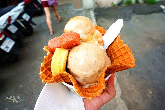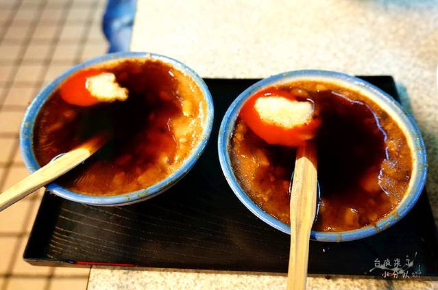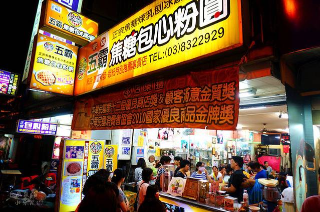 让喵神热血沸腾的第二个美食目标是五霸焦糖包心粉圆。看看门口张挂的各种奖励,就知道这家店不简单。但不简单的店...那就得排队啊。他家创出招牌的包心粉圆焦糖炼乳冰,绵密的刨冰内藏有10多款口味的包心粉圆,表面淋有炼乳和焦糖,味道甜中带苦,也是《食尚玩家》大力推荐过的哦