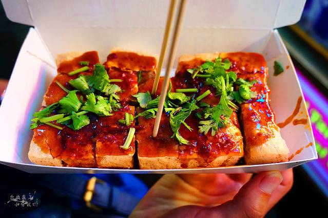 目标美食三——蒋家创意棺材板。还记得之前喵神提到过的台南的赤崁棺材板吗?在台南没吃到,这次怎么也不能错过了。蒋家创意棺材板的酱汁丰富,口感润滑,吐司里面裹的料种类非常丰富,强迫症喵神又开始给大家说菜单了:洋薯沙拉、沙拉鲔鱼、奶香鸡肉、糖醋鸡肉、蜜汁熏鸡、椒麻鸡肉、宫保鸡丁、沙嗲猪肉、黑椒猪肉、泡菜猪肉、椒麻猪肉、沙嗲羊肉、黑椒羊肉、葱爆牛肉、沙嗲牛肉、椒麻牛肉...这是俺们去的时候的所有口味。