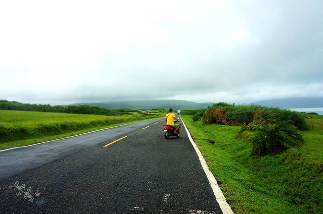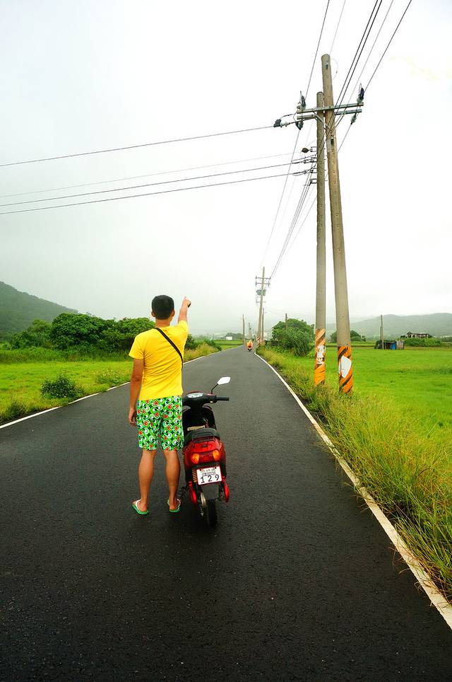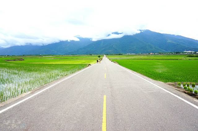 要怀抱着什么特别的期待值来这里,肯定是会失望的,因为这里就是一条很直的道路,两旁是再平易不过的乡村稻田风光,远处青黛色的山被云雾隐去了顶端。要是放在大陆,很多地方都能看到这样的美景,所以并不显得很特别。但换个心境看,美不是拿来比较的,如此这样美景当前,眼睛和心灵都像是经历了一场沐浴,洗得透彻而洁净。