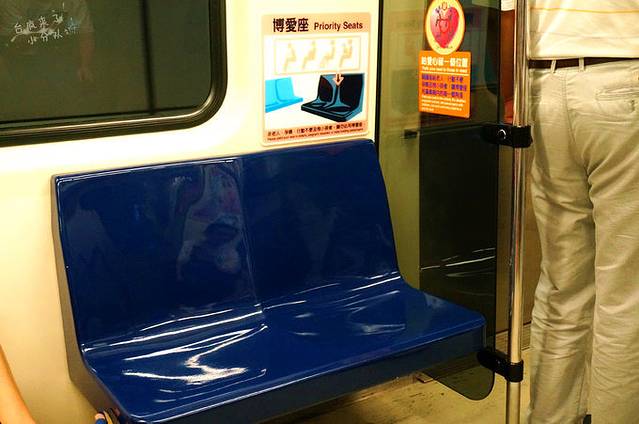 从上图就可以看出,台湾确实是一个社会公共秩序良好,普遍道德水平较高的地区,捷运、公交站台上排队是所有人的习惯,而且还是沿着地上所划定的区域排列;捷运上博爱座一定是给老弱病残孕坐的,就算车厢内没座位了,也没有需要坐这样座位的人群,大家也会自觉不去坐
