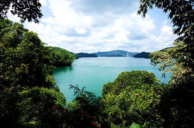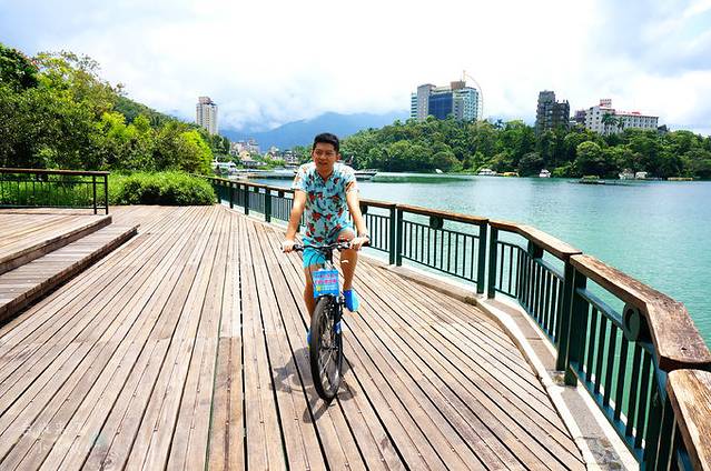 8月8日,自行车环日月潭骑行中的一汪翡翠