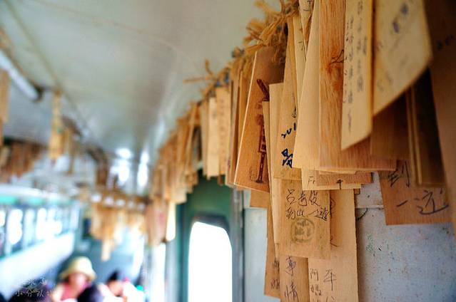 车厢中挂着很多小木片,上面写满了祝福和愿望,有没有觉得逼格顿时又提高了呢~