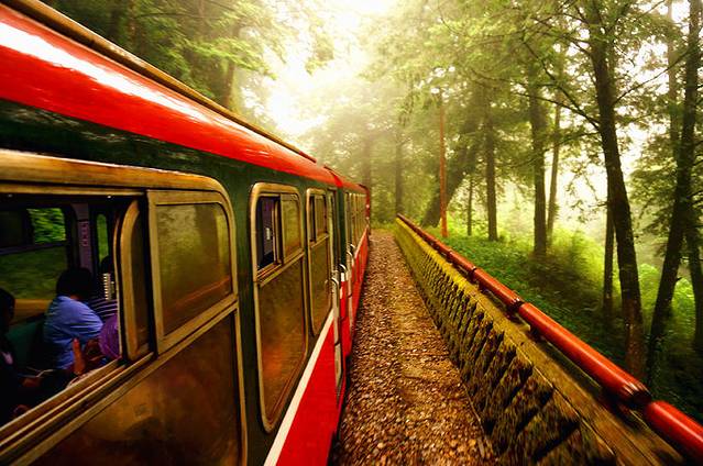 8月9日,飞驰在满满纯净氧中的阿里山小火车