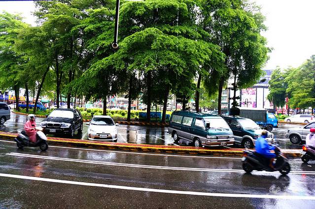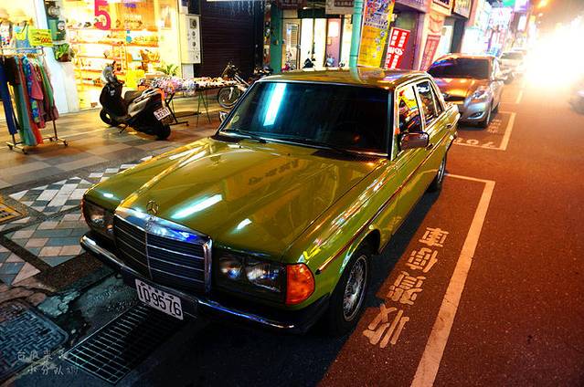 端着刨冰,准备继续打车去自强夜市时,看到路边很可爱的老爷车,这颜色也忒稀罕了吧。