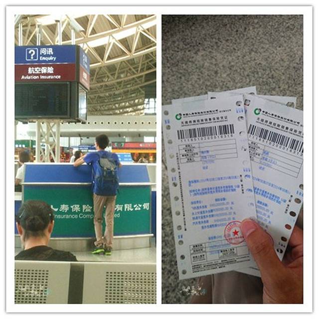 当然,一般来说都不会如此顺利。果然,海傻子忘记了买航空保险,不怕一万,就怕万一啊,要是我也跟飞丢了的马航那么不幸咋办...这钱还是不能省的,好在及时在双流机场找了个买保险的地方,白白多花一笔。(一般和机票一起买保险是比较便宜的)