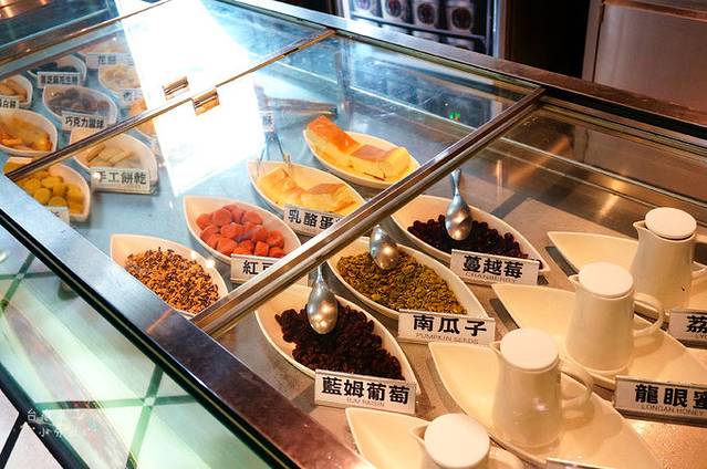 噹噹噹噹!先将桂花、黑糖、红豆、芝麻、抹茶、花生等口味的包心粉圆,加上豆花、仙草,然后铺上刨冰,再特意把冰压实后淋上焦糖和炼乳,五霸焦糖包心粉圆就出炉咯!话说,这么超大一碗完全可以几个人一起吃,小分队两个人要吃掉的话那也是压力山大,HOLD不太住啊。