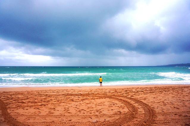8月12日,垦丁南湾渺渺大海、沙滩上的轮印和沉思