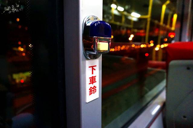 公交上,喵神终于注意到了传说中的下车铃。这东西是俺们成都还没有的,到站要下车就要按铃提示司机,要是没人按铃,司机到站是不会停车的。台湾公交车上的下车铃一般设置得非常方便,你在车内几乎所有地方,可以找得到一个伸手就能按到的铃。
