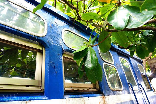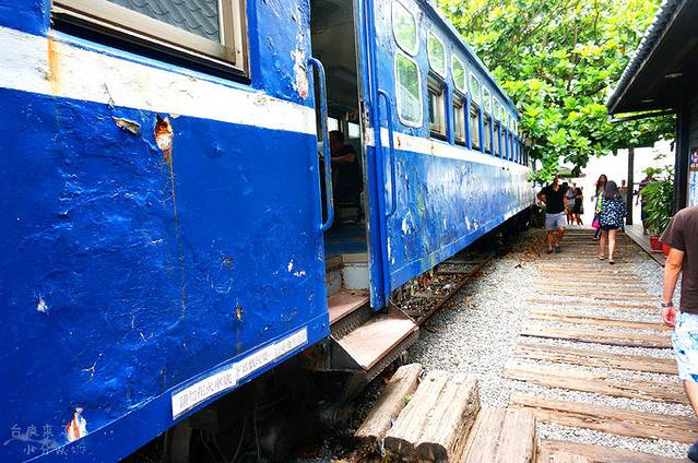 路是用卵石铺平的枕木,车厢的蓝色看得出来是新刷过的,但铁皮上留下的破损痕迹显得更有味道。