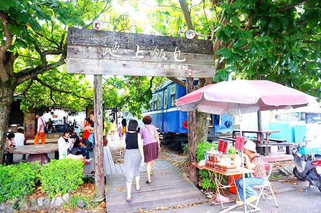 走花东纵谷,很让人期待的就是这餐午餐——池上便当!之前在台北车站与台铁便当本铺擦肩而过,这就是小火车美食情节的最终落脚点了。车一到,喵神那个雀跃啊!这家池上便当总铺叫做“池上饭包文化故事馆”,很高大上吧,位置就在池上火车站不远处。