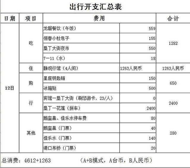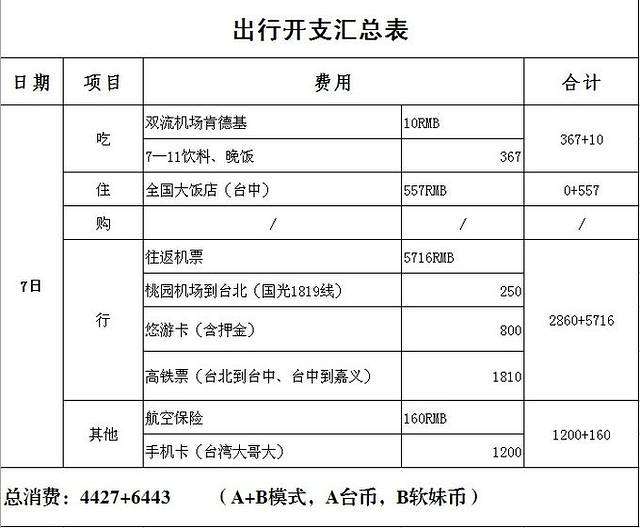 机票是提前很久关注的,但是发现从成都出发,直飞台北的机票价格波动不是特别大,川航有飞松山机场的航班,但是时间不是很适合,所以还是选择了国航,价格是2858/人(含税),还算穷屌勉强可承受的范畴。全程的开销细账,这次都有仔细地记录,想多了解花费的朋友直接看每天记录最后的开支汇总表哈!
