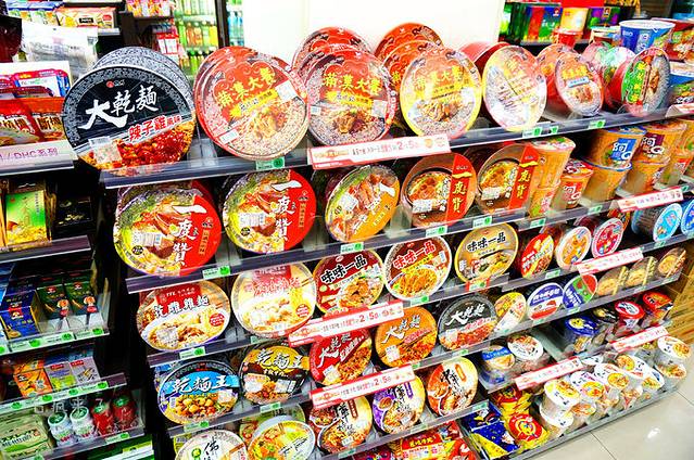 坐接驳车在科博馆站下车,距离我们预定的台中全国大饭店还有一小段距离,虽然精疲力尽而且饿得前胸贴肚皮,还是要坚持到底啊。路过7-11,简直可以说是原地满血复活!这才第一次进去仔细扫了一遍。看看台湾最引以为傲的方便面,选择那叫一个多啊!还有很多新奇的小零食,真想全部都尝一尝。