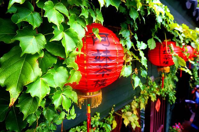 8月16日,九份阿妹茶楼绿叶中的红灯笼