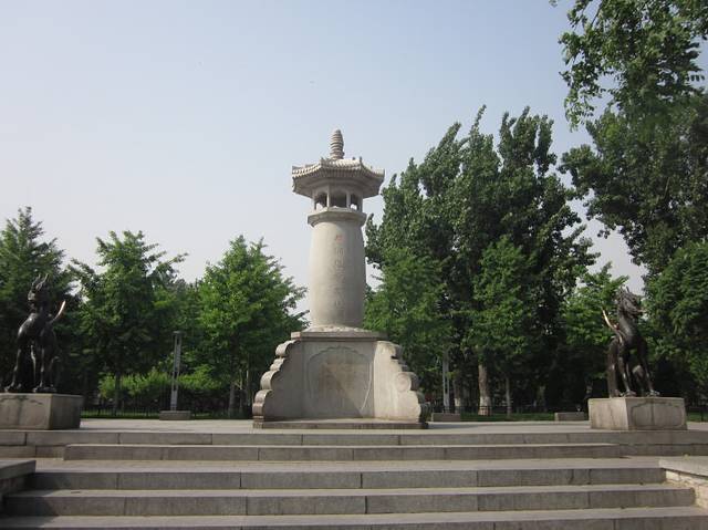 顺着法源寺前街走,当你看到一个矗立着刻有“唐悯忠寺遗址”石碑的公园时(小夕也不清楚应该称它什么,姑且称其为石碑吧),法源寺就到了~