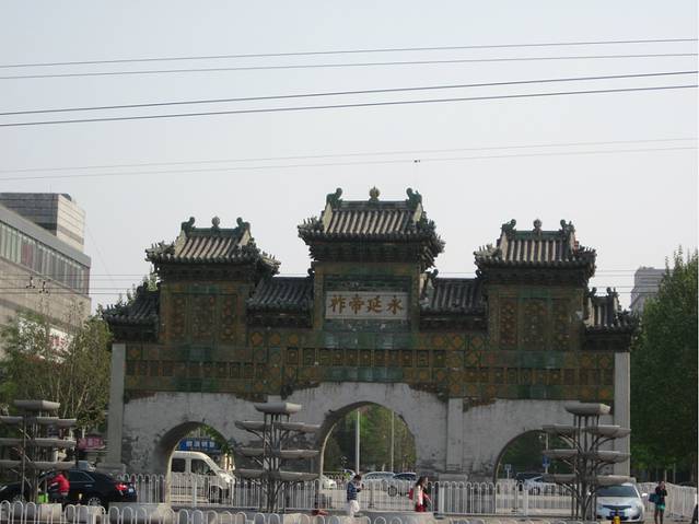 马路对面的琉璃牌楼本来也是东岳庙的一部分,但是由于朝外大街的关系,现在只能与东岳庙隔街相望了