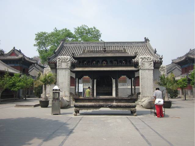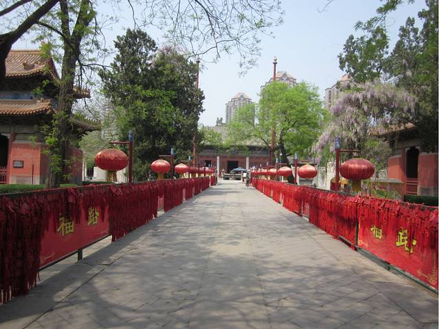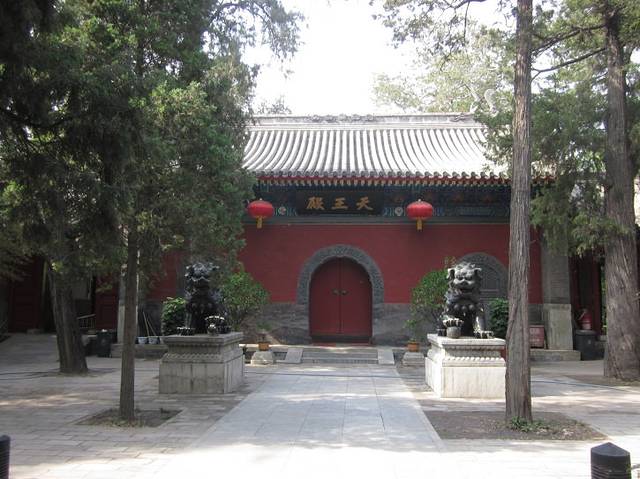 过了昭泰门即为天王殿,又称雍和门,此殿原为王府的宫门,后改建为天王殿。殿内供有布袋尊者和四大天王塑像。
