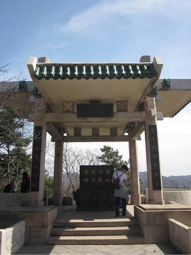 南线上值得一提的是贵州碑亭,虽然只是一个小小的亭子,但这却是长城上难得的一见的不一样风景。此亭名曰黔心亭,造型别致,显示出浓郁的黔山苗岭风采,好像苗寨的绿竹屋檐。亭子里立有一个石碑,上书“爱我中华,修我长城”,以此铭记贵州各族人民积极捐赠、赞助修复长城的爱国壮举。