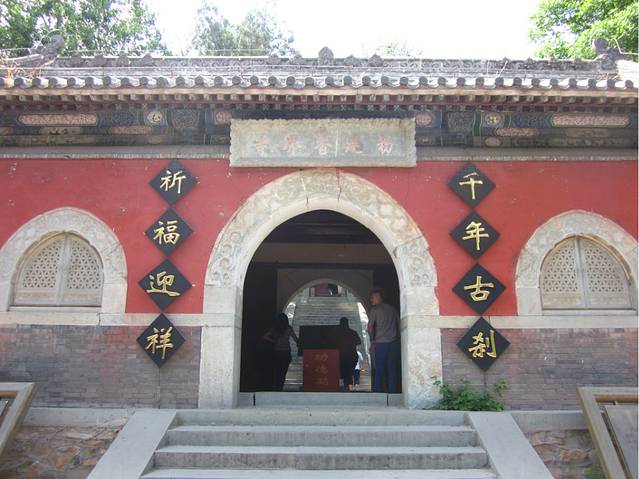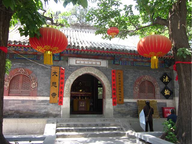 位于半山腰,相传建于北宋或辽金时期,原名“隐寂寺“。大悲寺坐西朝东,正对山门有两株古楸树。整个院落为三进四合,山门殿有石额“敕建大悲寺”,为清康熙帝御笔。