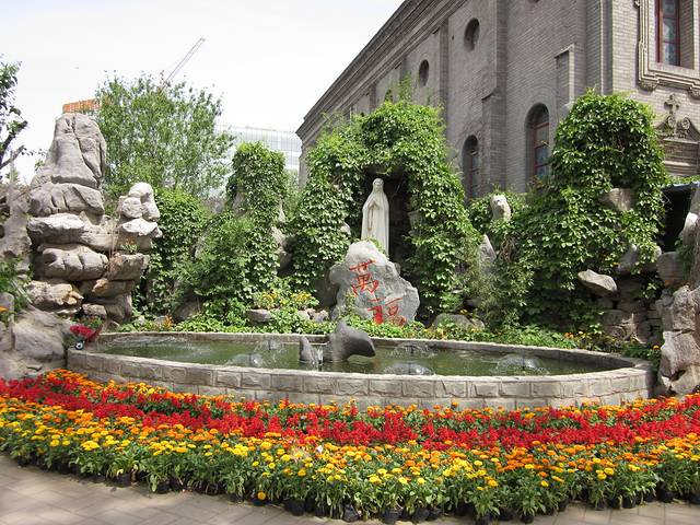 据说在教堂南侧,未来将会建造一个占地1000多平方米、王府井大街上最大的绿地,它将是一座花卉、灌木、乔木立体种植的花园,因其以玫瑰为主,因此被称为玫瑰园。从玫瑰园流出的一股人造泉水,因为依广场南侧层叠而下,所以名为“叠泉”。据说,由于完全按西式天主教堂设计,玫瑰园下还会有一个葡萄酒窖,听着很美很酷,让我们拭目以待吧。