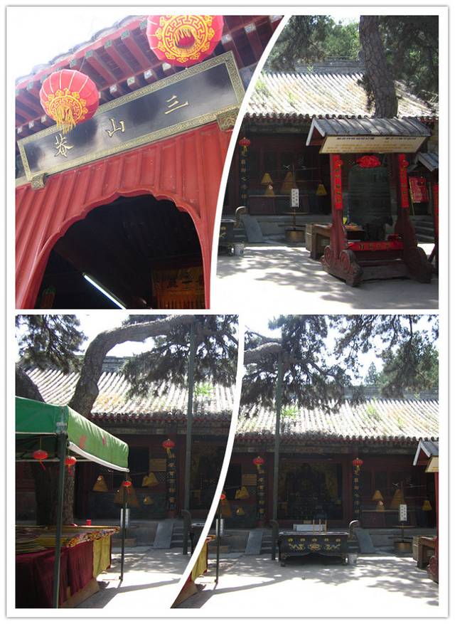 三处是三山庵,建于金代,地处翠微、平坡、卢师三山之间,故名”三山庵”。在八座古寺中,三山庵虽面积不大,但却玲珑别致。庵内仅有一层院落,为红墙灰瓦的四合院,院内松柏叁天,古楼幽静。清朝时,因高僧达天通理禅师在此研磨禅理、著书立论,而名噪一时。正殿悬额题为“是大世界”,东配殿内额题“建阳半幅精舍”,外额题:“翠微入画”。这里,地势豁朗,视野开阔,临轩远眺,玉泉山塔,昆明湖水,紫禁城楼皆可尽收眼底,西山十二景之“春山杏林”、“虎峰觅翠”、“深秋红叶”、“层峦晴雪”等在这里都可一览无余。因此,三山庵虽小却内藏珠玑,确是当时独领“三山”。