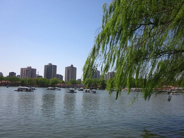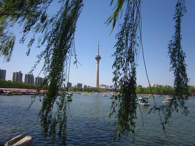 玉渊潭公园是北京近郊一个较大的公园,总规划面积有 136.69 公顷,公园中心有一个很大的湖。如果观赏完樱花,走累了,可以泛舟湖上,望着不远处的电视塔,看着湖岸边赏樱的人群,沐浴着着阳光和微风,好不惬意~