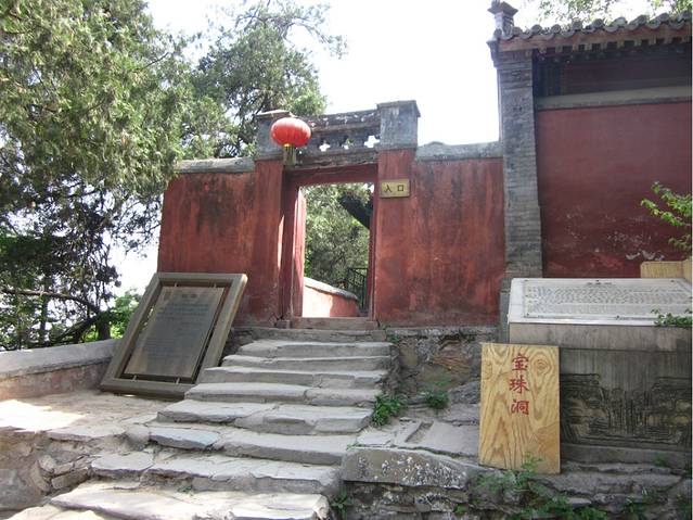 走过这扇门就来到了宝珠洞~ 宝珠洞的规模并不大,寺门朝东北,殿宇面东南。有敞亭一座,殿宇两重。院落东南是三开间卷棚顶敞亭,名叫“眺远亭”,这里是远眺京城美景,观赏日出的极佳处,故有“京西小泰山”之誉,这里也是十二景之”绝顶远眺“的所在地~