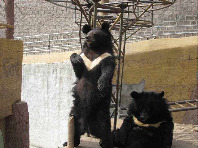 再往前走就是八达岭熊乐园,不需门票,就在出口下山的路上。有两只小黑熊超爱镜头,当人们举起相机给他们拍照时,竟然站起来鼓掌,太Q了~