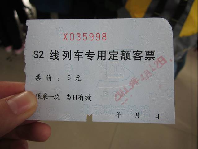 S2线动车组,北京北站——延庆,中间停靠八达岭站,票价6元,有公交卡的朋友可以直接刷卡进站,没有公交卡的外地游客,可以在售票口买一张车票,票价同样是6元,无需出示身份证。