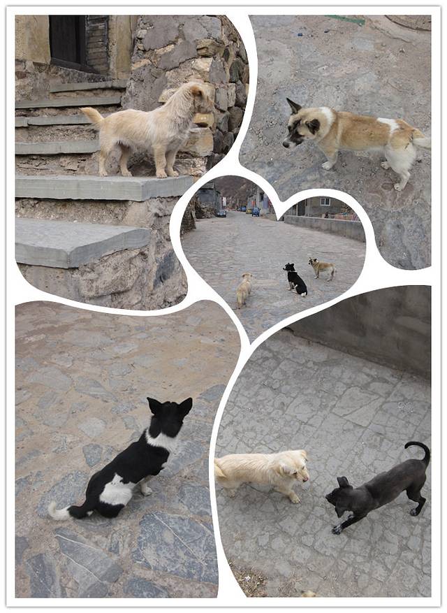 偌大的一个村子静悄悄的、空无一人。除了我们这一波浩浩荡荡的游客就是这三只可爱的小狗了。
