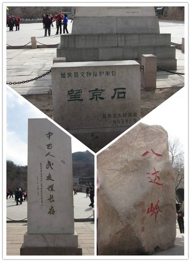 熊乐园出来,就是去车站的路了,跟着人群、沿着路标一直走就可以。 下山的路上,看到了刻有八达岭的大石头、中巴友谊纪念碑、望京石。