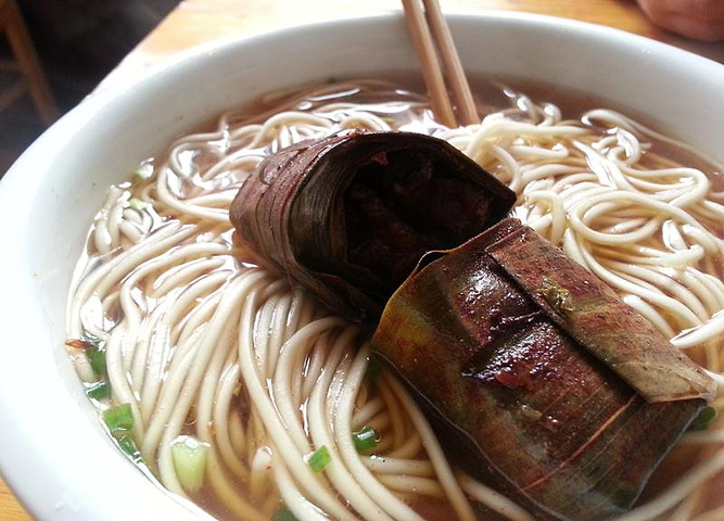 晚饭的面条一般般,尝了芝麻汤圆真心好吃,肉馅的就比较油腻了。坐在二楼看楼下真有意境。