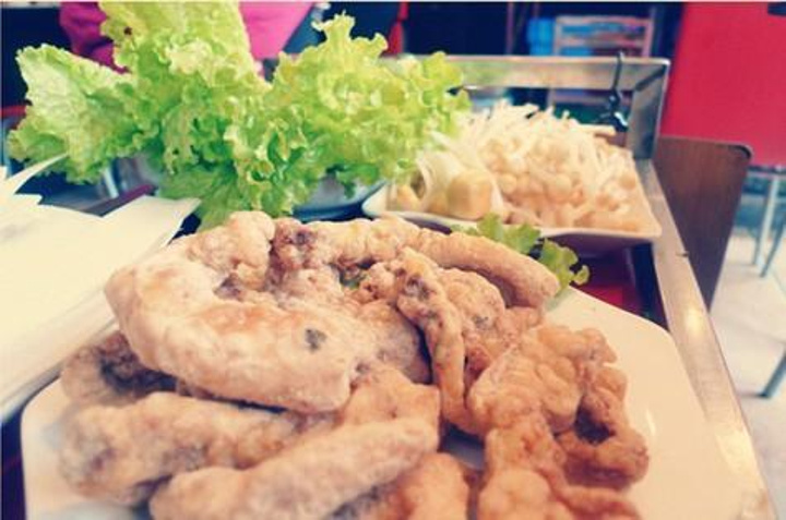 找了一家很亲民的火锅店,汤底38元,不过要最少人均50元的消费,菜料很足,4元都一大盆。