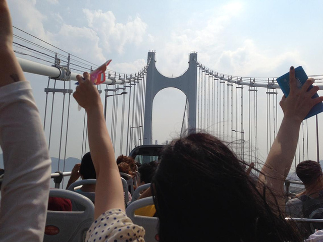9:30到17:00,30分钟一趟,全程1小时40分。 票价:成人10000 主要停车点:海云台海水浴场,新世界百货店