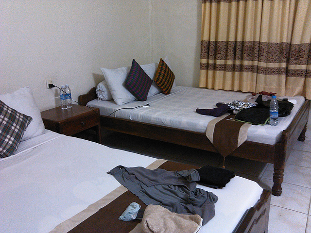 第二天才正式入住的Oral D'Angkor,房间一般,但比之前的要稍微好一些。酒店位置很偏,晚上一个人坐车回来也会有点害怕。稍微像样点了!还是很简陋的,完全不值12刀!!来自游记一个人的柬埔寨-暹粒之行攻略,7天6晚
