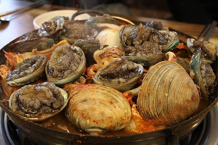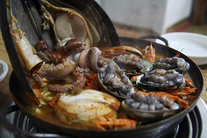 第二天我们选择去了一家韩国同学推荐的好味餐厅。这家最推荐的就是海鲜汤!一口小锅,里面塞满了各式各样的海鲜。