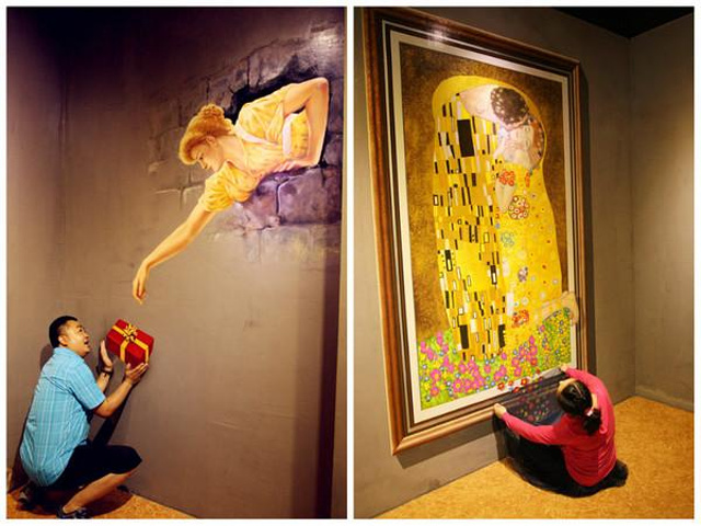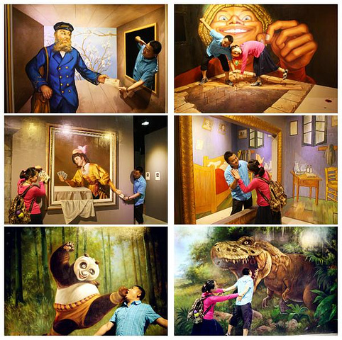 体验馆使用面积共计1500余平米,共划分为7个主题分区,分别是名画馆、海洋馆、中国馆、错觉馆、古埃及馆、动物馆、生活馆;