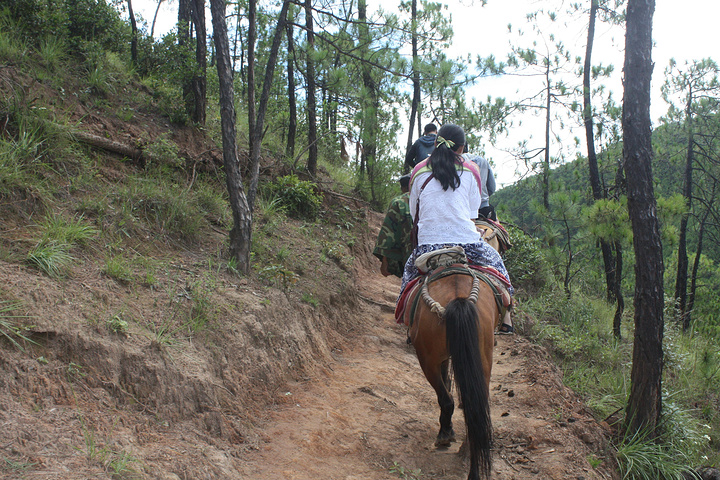 今天行程是拉市海一日游。同程网上买了两张团购拉市海一日游,早上10点司机来接,大约1小时车程,到达西湖马场,还以为和电视上那些马场差不多,到了才知道就一两间破旧的房子,加一小块空地。近一个半小时的山路骑马还行,就是屁股后来受不了,马鞍太硬了。说是茶马古道,我看就只像山坡上开出来的一天小路,不过在幽静的山里骑着马还是挺舒服的。