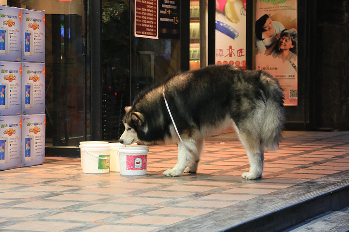 路边的狗狗,嘿嘿在喝路边的水真不见外