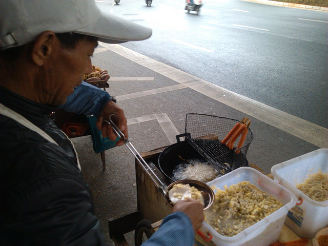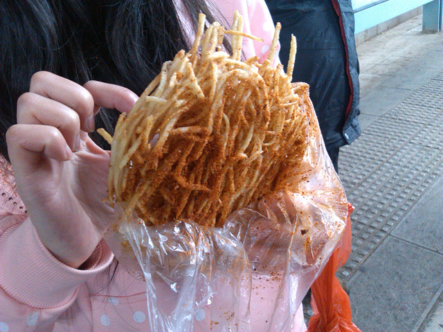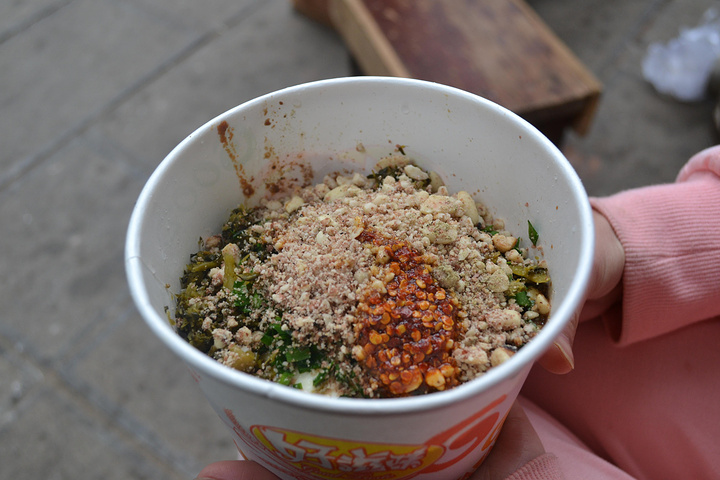 从小菜园立交桥乘A2路公交车到塘子巷,然后步行到吴井路110号,这里是一个居民区,但是每天11点以后,小区门口就会出现一批小凳子,就是在这里吃豆花米线,5元一小碗,5.5元一大碗,味道不是一般的霸道。值得一提的是,在小菜园立交桥等车的时候,为了串零钱在路边买了一个土豆饼,意外地发现居然秒杀我吃过的任何薯类制品,特别是大叔自制的调料,有花生、芝麻、辣椒,洒在土豆饼上真是绝配,我们愣是情不自禁地又去买了一个。