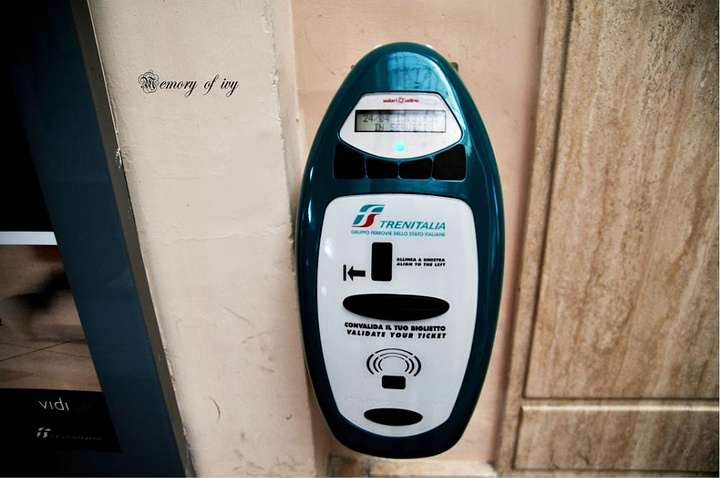 这个要特别注意一下!!!!!!!!!!!这个打卡机,是要在你上火车之前打的,因为会有时间,如果你买了火车票但是没有打卡的话,也算套票!!!的,因为没有时间的话你任何一天都还能用,所以必须记得上火车前打票哦@@@@~~·而且火车票在意大利是必查的,如果忘记了被罚钱的话就太冤枉了!!!而且会罚很多的~~~~切记!!!!!!!!!!!!!!!!!!