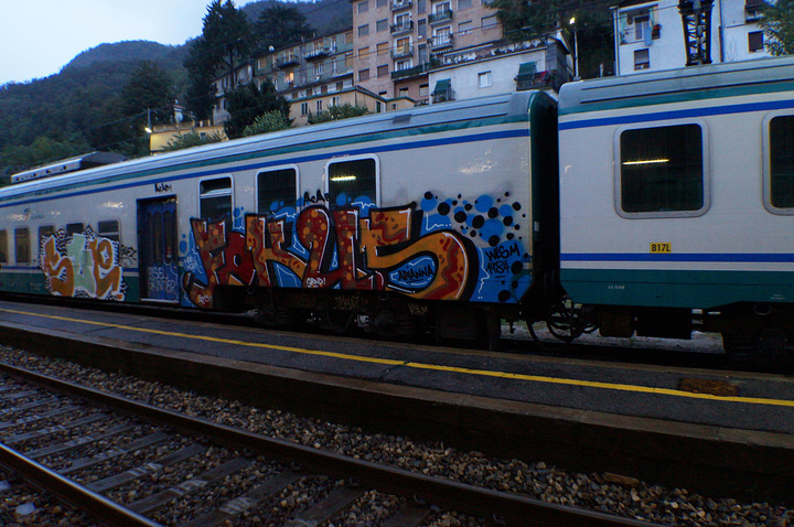 我和M起来的时候发现老爹和J哥已经从外面买了牛奶和牛角面包回来,号幸福。但是退房后发现外面在下暴雨,本来打算做公交车去火车站现在也只能打车了,旅店老板很nice的帮忙叫了taxi,大概10欧左右到了火车站。到了的时候雨已经小了很多,水汽很重,因为火车站是在小山丘上的缘故所以正好高处最后眺望了科莫镇的景色,云雾缭绕加星星点点的灯光,很美,不想离开。火车上有个小插曲,J哥和M激动的看小爸爸其他人睡觉,没过多久车停了我们也没在意。一会儿一个大叔工作人员看我们还在车上就问我们去哪,我们说是去瑞士,结果他说不是这个车,这个是去米兰的,汗,没感觉做错车啊,估计是要在该站换车,然后一路狂奔换车,还好人品不错