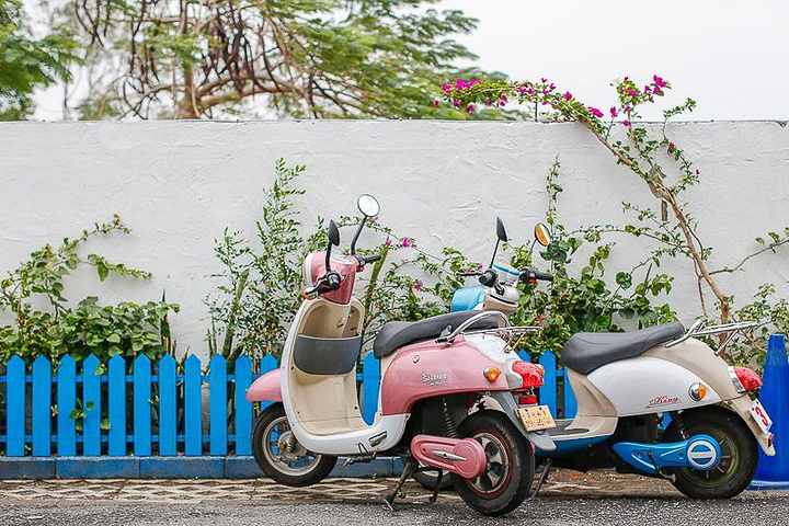 市内交通:有垦丁街车,但是大部分人还是会选择租机车,烧油的机车在台湾是需要驾照的,所以我们只能租电动机车。根据机车的功率速度,价格相差挺大的。最后我们租了一辆小功率的,因为比较便宜。一天400台币包一块电池,加一块电池200台币。一块电池可以开25公里。我们玩了一整天用了3块电池,所以共800台币。游玩路线: