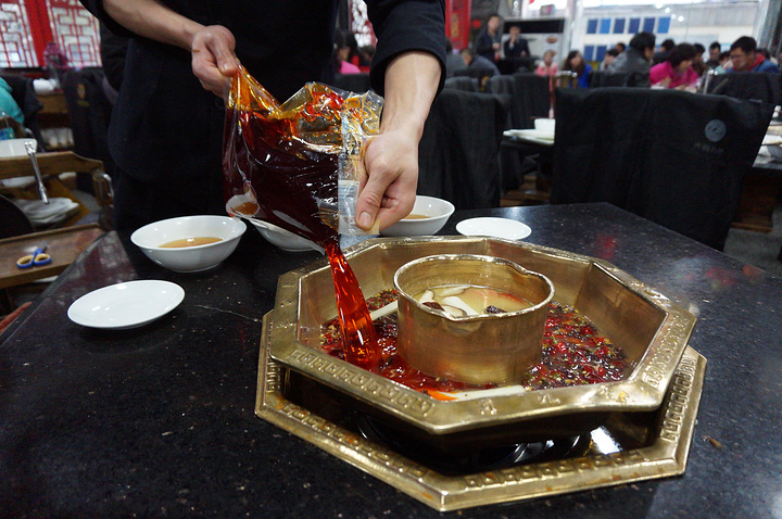 蜀九香火锅是计划中的美食,但一直没有机会,今天晚上就要离开成都,这个计划还是决定实现。找到南府路的老店,排了近一小时的队终于吃上了,九香牛肉、九香排骨、香菜丸子、千层肚是它的特色,吃过之后感觉这个决定是何等的英明,一个小时的排队也值得了。