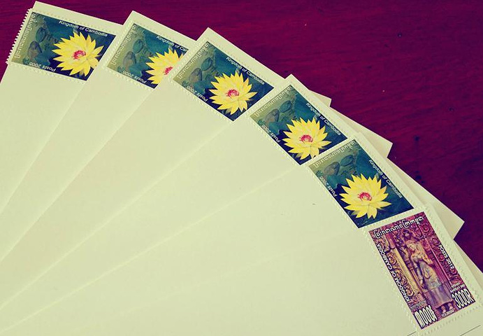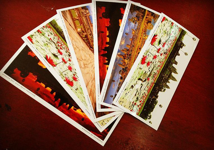 六张明信片,那张邮票不同的是发往法国的,比发往国内的贵1000瑞尔。