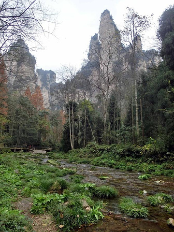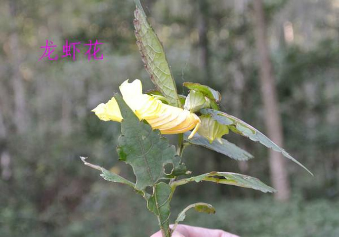 金鞭溪里植物很多,有珙桐、银杏、香果树、鹅掌楸等,很多挂有牌子.小陈给我们指给看一种叫"鹅掌枫'的树,叶子长得像"鹅掌".还有一种叫做"龙虾花"的草.龙虾花是一种珍贵的草本植物,它春天发芽,夏天开花,秋天结实,冬天落叶。根据花形大小不同,一般可分为三种,当地人称花小的为“米虾花”,花大的叫“龙虾花”,介于中间的为“河虾花”,龙虾花颜色各异,有红色、蓝色、黄色等。深秋时节,老“虾”泛黄,进入成熟期,它的种子又酥又脆,轻轻一碰, “叭”的一声,种子飞了。所以如果采种时,一要看得准,二要动作快,三要抓得紧,否则, “啪嚓”一声,不但种子得不到,还会吓一大跳,这就是龙虾花的绝招——“虾跳”。仔细看,就