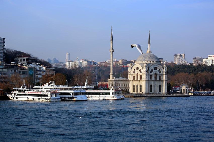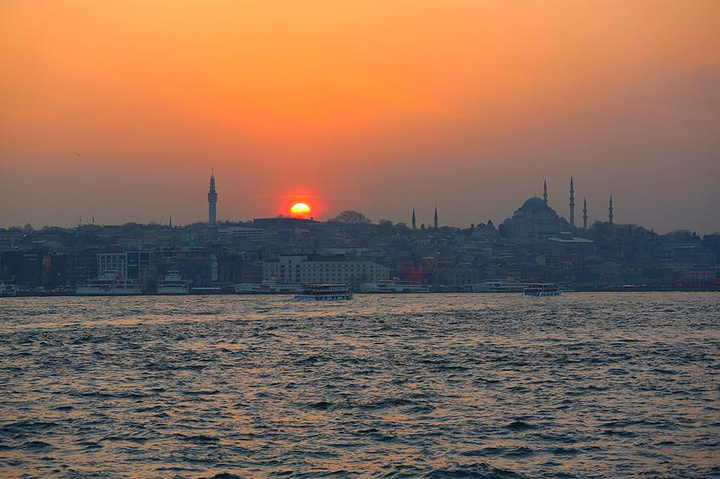游览完托普卡帕大皇宫后,我们便到街上打车,准备到加拉塔大桥边乘坐博斯普鲁斯海峡游轮。博斯普鲁斯海峡又称伊斯坦布尔海峡。它北连黑海,南通马尔马拉海和地中海,把土耳其分隔成亚洲和欧洲两部分。